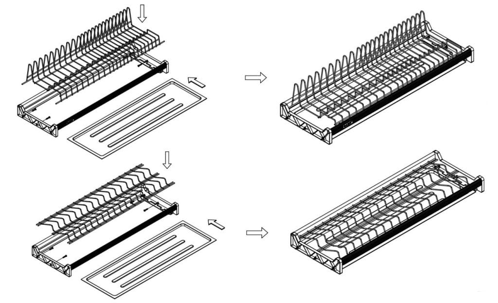 - Áp dụng cho khoang tủ có kích thước phủ bì 600/700/800/900mm, tương ứng với kích thước lọt lòng 564/664/764/864mm, chiều sâu tủ > 300mm, chiều cao >550mm.
