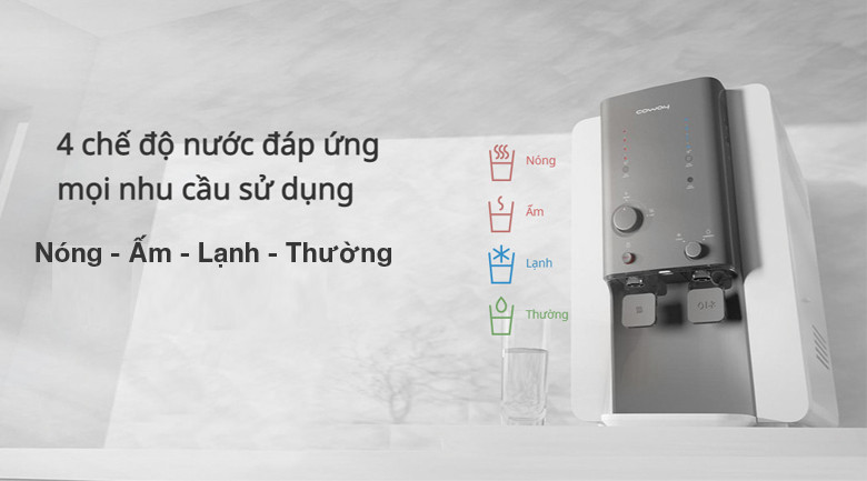 Máy lọc nước Coway CHP 18AR – với 2 vòi lấy nước uống nhưng có đến 4 nguồn nước với nhiệt độ khác nhau đó là : nóng, ấm, bình thường và lạnh.
