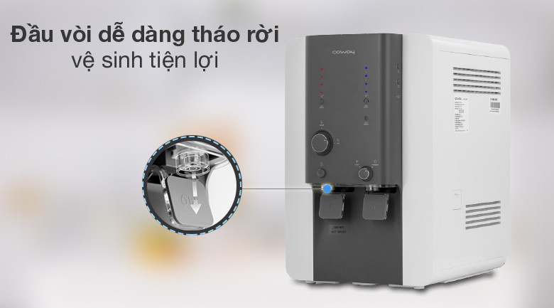 Máy lọc nước Coway Villaem 2 có núm vặn, giúp người dùng lựa chọn loại nước rất đơn giản và dễ dàng, chỉ cần xoay để lựa chọn nước lạnh hoặc nước thường.